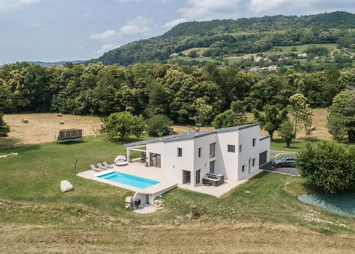 A hegyre néző terasszal rendelkező 1 hálószobás Villa Plein La Vue En 360° Coublevie 26 perces autóútra fekszik a Saint Geoirs repülőtértől.